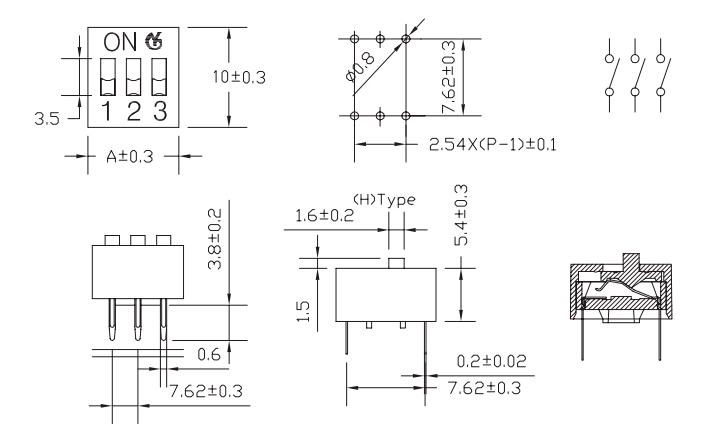 撥碼開關包裝方式:所有開關推鈕在包裝時都設置在" OFF“的位置。